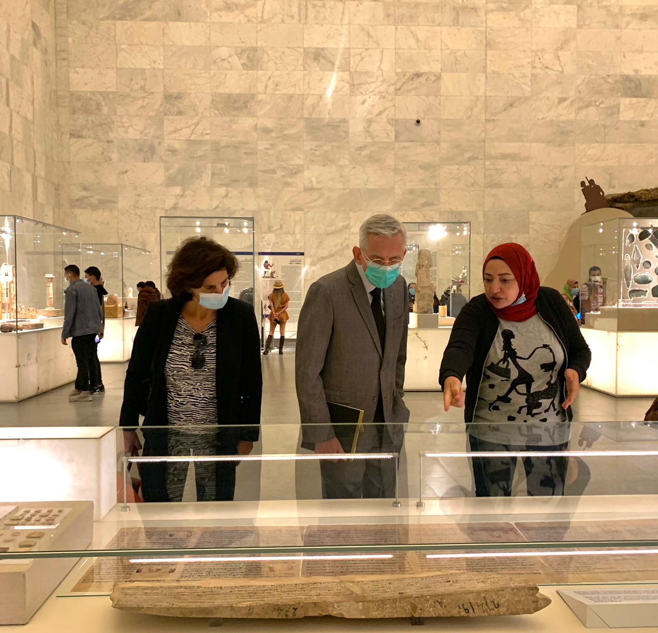 وخلال الجولة قام السفير بزيارة قاعة العرض المركزي وقاعة المومياوات، كما استمع لشرحِ من الدكتورة عبير أبو المجد كبير أثريين المتحف عن المقتنيات الأثرية المعروضة بالمتحف وقاعاته.